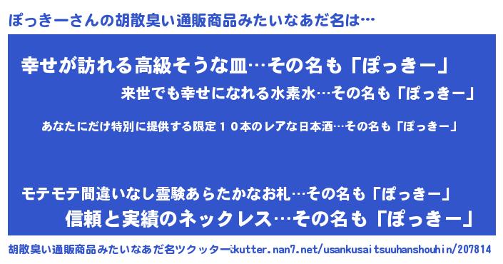 | 意味不明あだ名 | 『住所不定無職ぽっきー(40歳)』 |