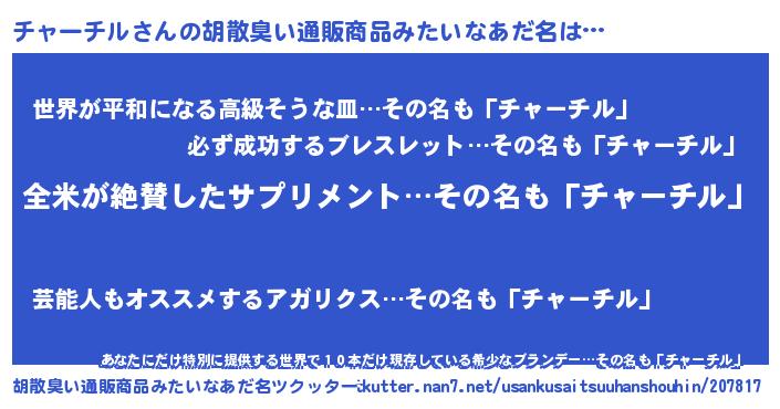 | 男性向けラノベタイトル風あだ名 | 『チャーチルの嫁は女の子じゃないと思った?』 |