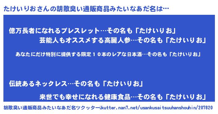 | 意味不明あだ名 | 『住所不定無職たけいりお(39歳)』 |