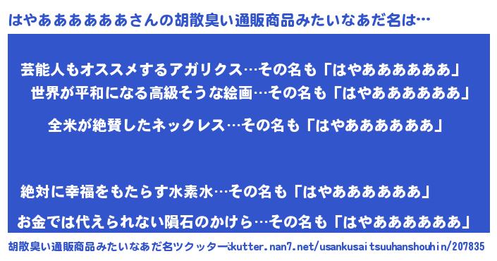 | 意味不明あだ名 | 『とにかく怪しいはやああああああ』 |