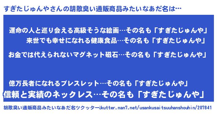 | 女子向けラノベタイトル風あだ名 | 『すぎたじゅんや恋絵巻』 |