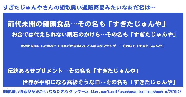 | 伝説のあだ名 | 『古より伝わる勇者すぎたじゅんや』 |