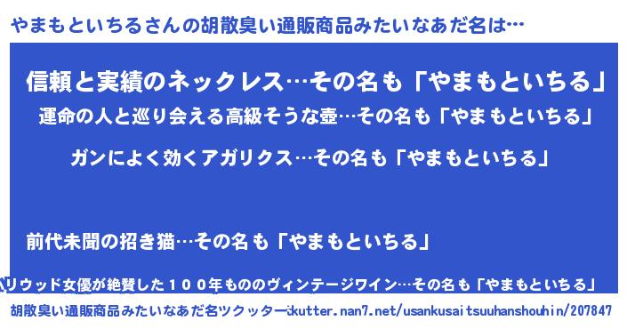 | 意味不明あだ名 | 『自称やまもといちる』 |