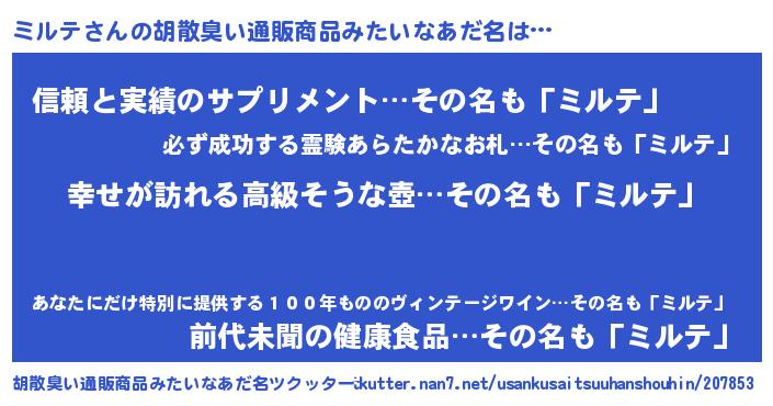 | 意味不明あだ名 | 『ミルテフォーエバー』『永久保存ミルテ』 |