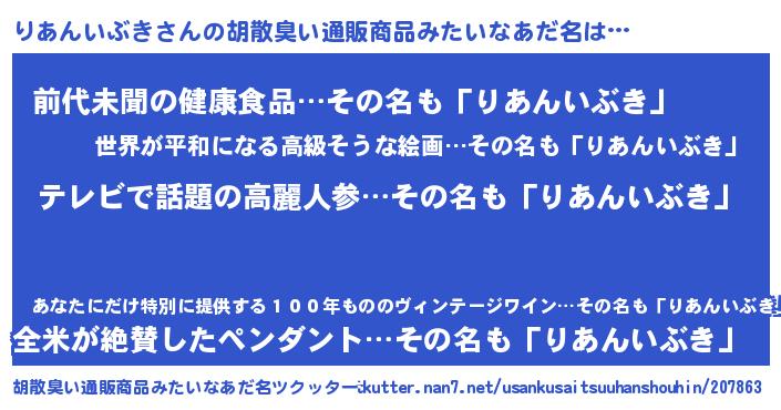 | 意味不明あだ名 | 『自称りあんいぶき』 |