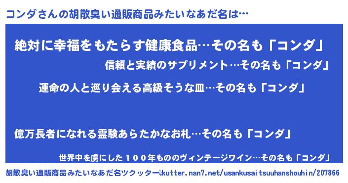| 意味不明あだ名 | 『コンダフォーエバー』『永久保存コンダ』 |