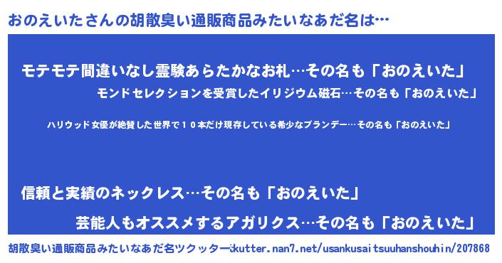 | 男性向けラノベタイトル風あだ名 | 『緋弾のオノエイタ』 |