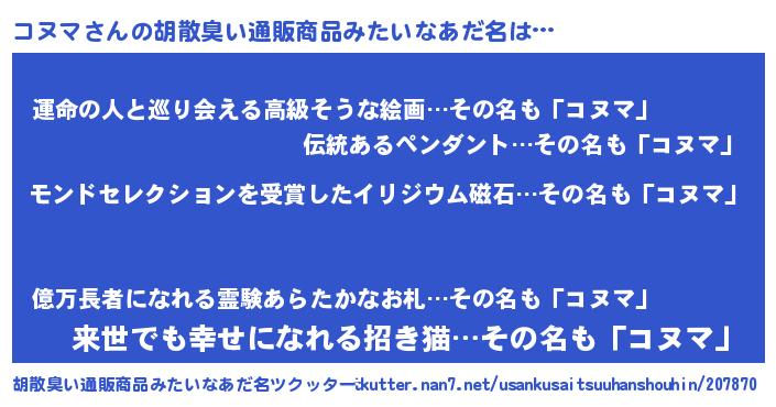 コヌマさんの胡散臭い通販商品みたいなあだ名をツクッター!