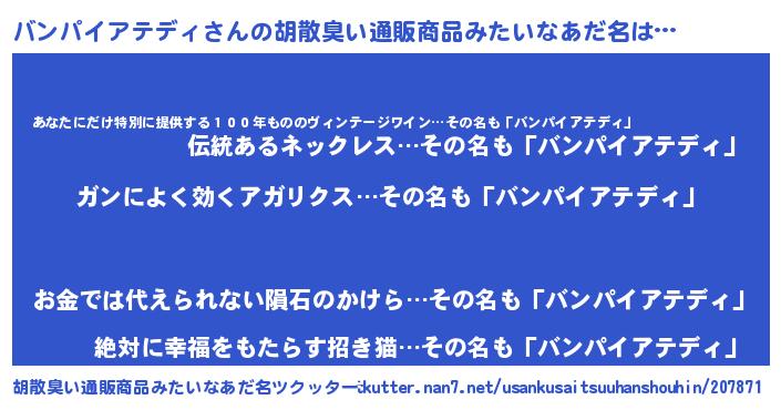 | 意味不明あだ名 | 『自称バンパイアテディ』 |
