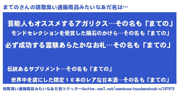 | 意味不明あだ名 | 『ペロリンまての』『自称まての』 |
