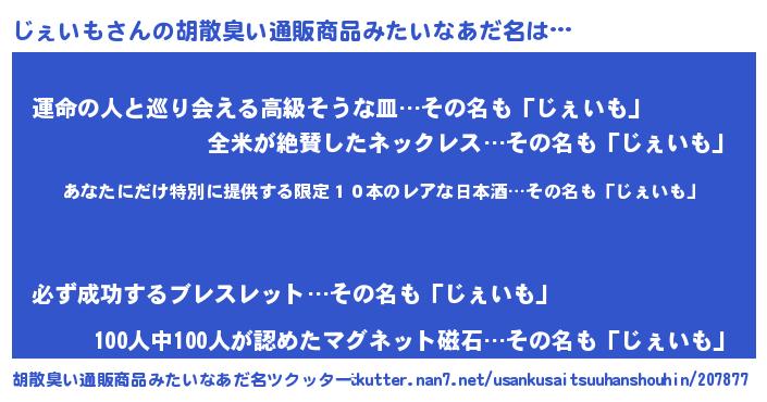 | 意味不明あだ名 | 『住所不定無職じぇいも(41歳)』 |