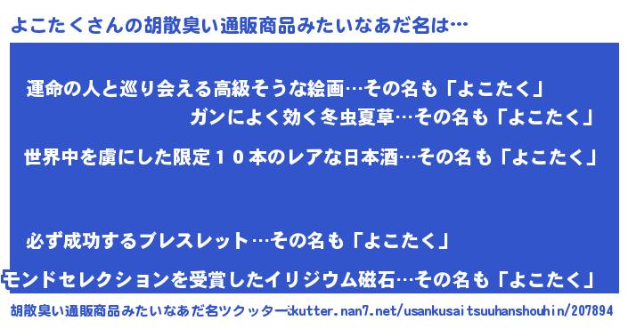 | 意味不明あだ名 | 『住所不定無職よこたく(43歳)』 |
