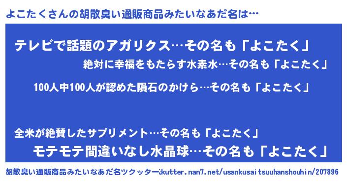 | 欧米人風あだ名 | 『ダニエルよこたく』『マイケルよこたく』 |