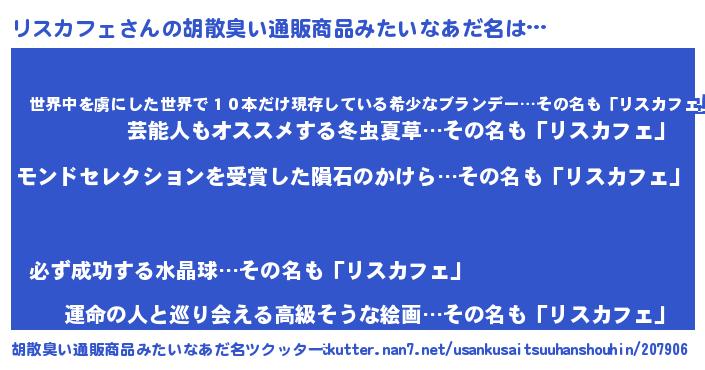 | ヒーロー風カッコイイあだ名 | 『慈愛の使者リスカフェ』『仮面リスダー』 |