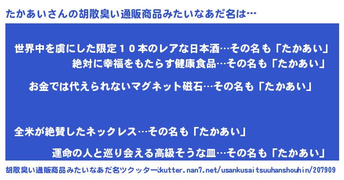 | 女子向けラノベタイトル風あだ名 | 『たかあい恋絵巻』『たかあい伯爵の花嫁』 |