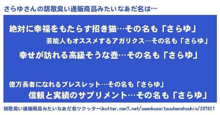 | ヘコむあだ名 | 『つくし』『さらゆ(小並感)』 |
