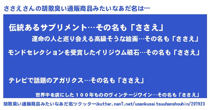 | ヒーロー風カッコイイあだ名 | 『天空の使者ささえ』『銀牙騎士ササ』 |