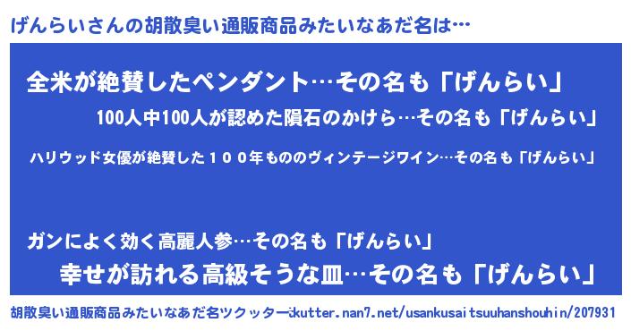 | 意味不明あだ名 | 『住所不定無職げんらい(9歳)』 |