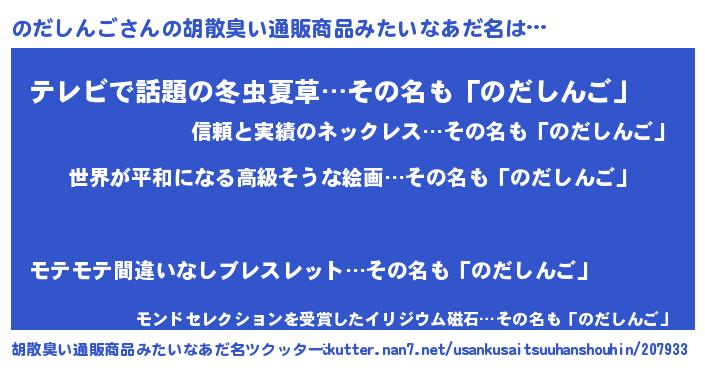| 肩書あだ名 | 『のだしんご少佐』『のだしんご国家主席』 |
