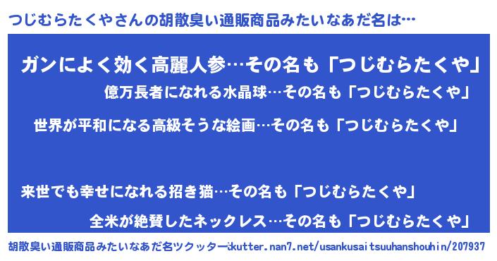 | 欧米人風あだ名 | 『つじむらたくやクリステル』 |