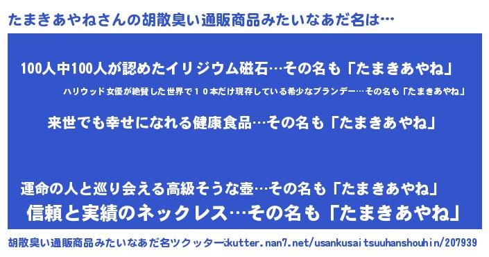 | ヘコむあだ名 | 『たまきあやね(爆)』『たまっ子』 |