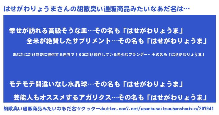 | 男性向けラノベタイトル風あだ名 | 『この素晴らしい世界にはせがわりょうまを!』 |