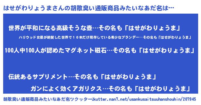 | 男性向けラノベタイトル風あだ名 | 『緋弾のハセガワリョウマ』 |