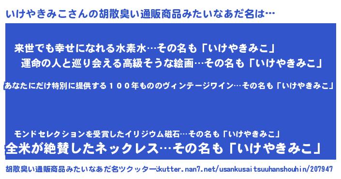 | ヘコむあだ名 | 『いけやきみこ(笑)』『いけを』 |