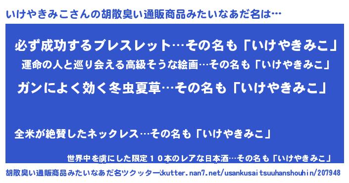 | 意味不明あだ名 | 『自称いけやきみこ』 |