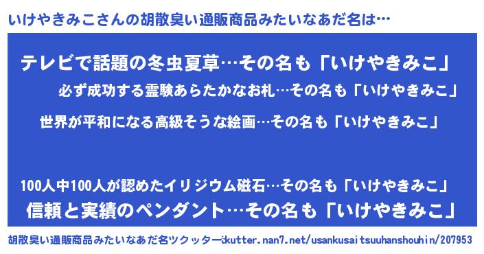 | 肩書あだ名 | 『いけやきみこ総理大臣』 |