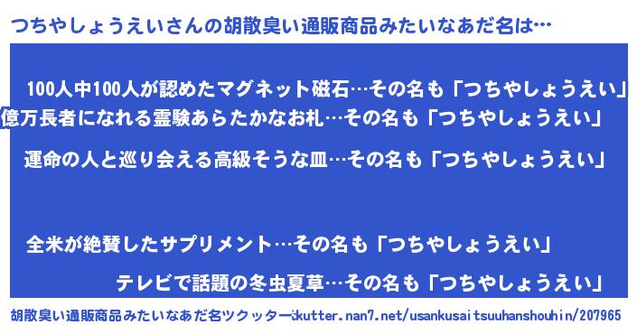 | 男性向けラノベタイトル風あだ名 | 『うちのつちやしょうえいが世界を掌握している!』 |