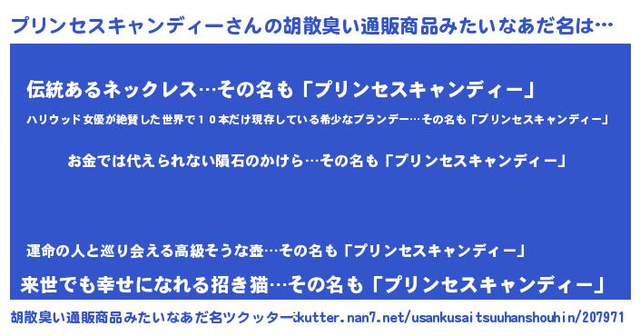 | ヒーロー風カッコイイあだ名 | 『愛の使者プリンセスキャンディー』 |