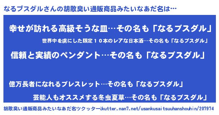 | 意味不明あだ名 | 『とにかく怪しいなるブスダル』 |