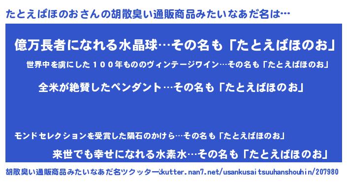 | 意味不明あだ名 | 『とにかく怪しいたとえばほのお』 |