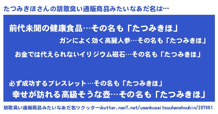 | ヘコむあだ名 | 『たつみきほ(笑)』『なまこ酢』 |