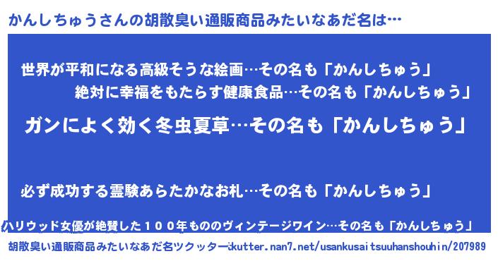 | 意味不明あだ名 | 『自称かんしちゅう』 |