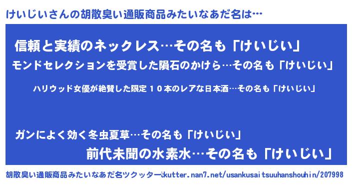 | ヘコむあだ名 | 『けい太郎』『けいじい(爆)』 |