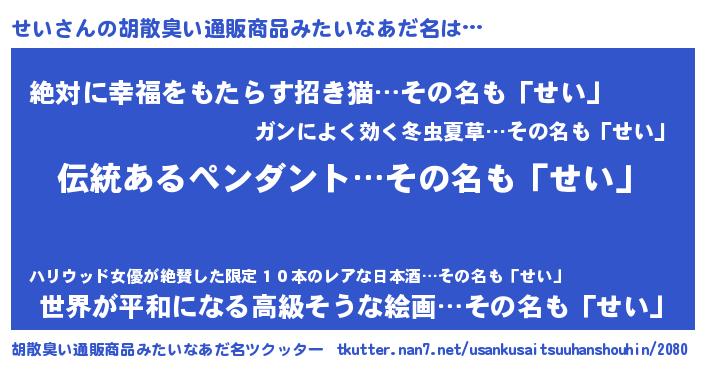 | 意味不明あだ名 | 『とにかく怪しいせい』『永久保存せい』 |
