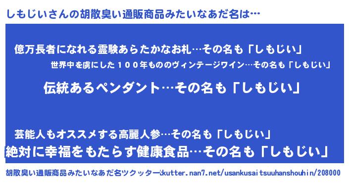 | 恥ずかしいあだ名 | 『シモリンリン』『プリティーしもじい』 |