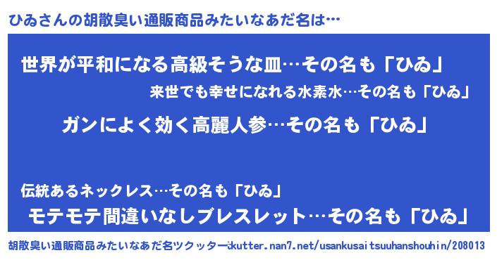 | ヘコむあだ名 | 『つくし』『ひゐにー』『ひゐ(笑)』 |