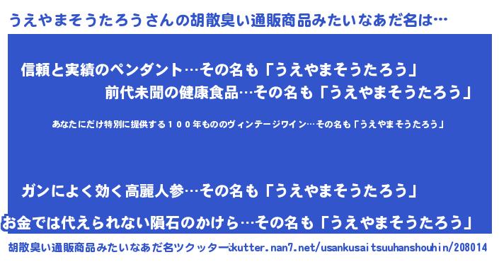 | 欧米人風あだ名 | 『ダレノガレうえやまそうたろう』 |