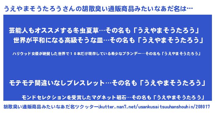 | 意味不明あだ名 | 『住所不定無職うえやまそうたろう(79歳)』 |
