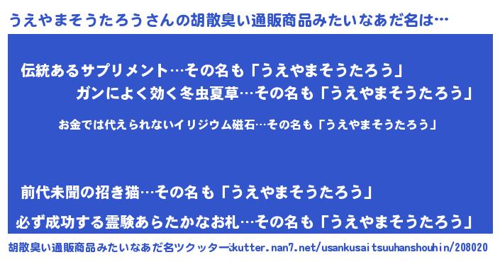 | 意味不明あだ名 | 『眠気覚ましガムうえやまそうたろう味』 |