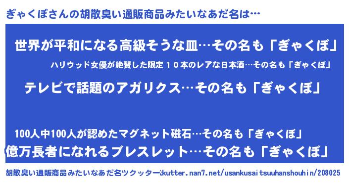 | ヒーロー風カッコイイあだ名 | 『サイバー戦士ギャクボ』『仮面ギャダー』 |