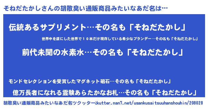 | ヘコむあだ名 | 『そねだたかし(震え声)』『そね太郎』 |
