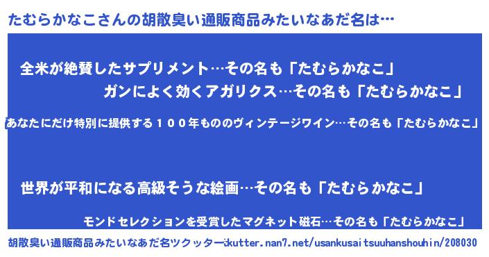 | 意味不明あだ名 | 『住所不定無職たむらかなこ(5歳)』 |