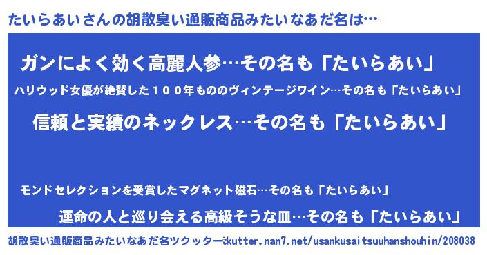 | 欧米人風あだ名 | 『たいらあい・ステッグマイヤー』 |