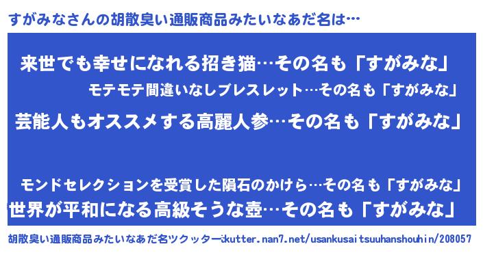 | 意味不明あだ名 | 『自称すがみな』『永久保存すがみな』 |