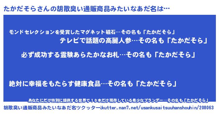 | 意味不明あだ名 | 『ペロリンたかだそら』『自称たかだそら』 |