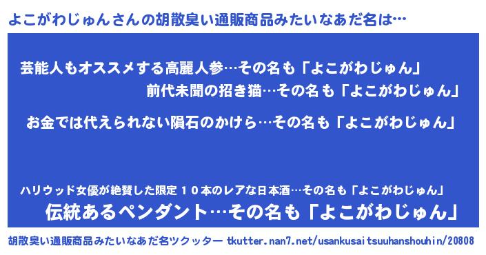 | 女子向けラノベタイトル風あだ名 | 『よこがわじゅん恋絵巻』 |
